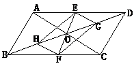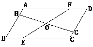 如图,过□ABCD对角线的交点O作直线EF交AD、BC分别于E、F,又G、H分别为OB、OD的中点,求证:四边形EHFG为平行四边形。![]()