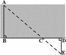 如图,要测量河宽,可在两岸找到相对的两点A、B,先从B出发与AB成90°方向向前走50米,到C处立一标杆,然后方向不变继续朝前走10米到D处,在D处转90°,沿DE方向走到E处,若A、C、E三点恰好在同一直线上,且DE=17米,你能根据题目提供的数据和图形求出河宽吗?
