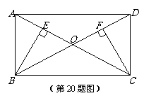 20. 如图,矩形ABCD中,AC与BD交于O点,BE⊥AC,CF⊥BD, 垂足分别为E、F.