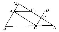 17(9分)、已知:如图,AC是□ABCD的对角线,MN∥AC,分别交AD、CD于点P、Q,试说明MP=QN。