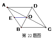 22、(本小题6分)如图,菱形ABCD中,对角线AC、BD相交于点O,点E是AB的中点,已知AC=8cm,BD=6cm,求OE的长。