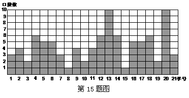 15.如图表示某班21位同学衣服上口袋的数目.若任选一位同学,则其衣服上口袋数目为5的概率是 .