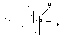 的平分线OM上有一点C,将一个三角板的直角顶点与C重合,它的两条直角边分别与OA、OB(或它们的反向延长线)相交于点D、E。