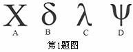 1.下面的希腊字母中,是轴对称图形的是 ( )