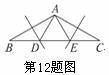 12.如图所示,△ABC中,AB=AC,∠BAC=4∠B,AB、AC的垂直平分线分别交BC于点D、E.认真分析下列说法: