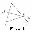 13.如图,AB=AC,AB的垂直平分线MN交AC于点D,且AB=15 cm,△BDC的周长为25 cm,则BC的长为______________cm.