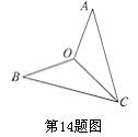14.如图,这是小亮制作的风筝,为了平衡做成轴对称图形,已知OC是对称轴,∠A=35°,∠ACO=30°,那么∠BOC= °.