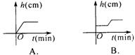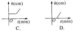 10.将一盛有部分水的圆柱形小玻璃杯放入事先没有水的大圆柱形容器内,现用一注水管沿大容器内壁匀速注水(如图所示),则小水杯内水面的高度h(cm)与注水时间t(min)的函数图象大致为 ( )