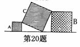 20. 如图,三个正方形A、B、C如图放置,且正方形A、B的面 积分别是2 cm2 和3cm2,则正方形C的面积等于_ cm2。
