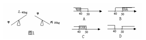 6.下图1是甲、乙、丙三人玩跷跷板的示意图(支点在中点处),则甲的体重的取值范围在数轴上表示正确的是 ( )