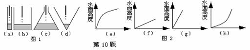 10、如图,图1是水滴进玻璃容器的示意图(滴水速度不变),图2是容器中水面高度随滴水时间变化的图像