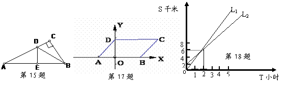 17、如图所示,平行四边形ABCD,AD=5,AB=9,点A的坐标为(-3,0),则点C的坐标为 。