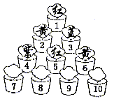 15. 把编号为1,2,3,4,…的若干盆花按下图所示摆放,花盆中的花按红、黄、蓝、紫的颜色依次循环排列,则第8行从左边数第6盆花的颜色为______________色。