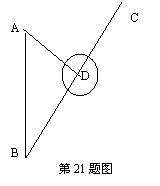 21、(本小题10分)如图,某沿海城市A接到台风警报,在该市正南方向150km的B处有一台风中心正以20km/h的速度向BC方向移动,已知城市A到BC的距离AD=90km,那么(1).台风中心经过多长时间从B点移到D点?