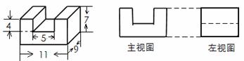 如图,一个工件是由大长方体上面中间部位挖去一个小长方体后形成,主视图是凹字形的轴对称图形.(1)请在适当的位置补画该工件的俯视图;(2)若该工件的前侧面(即主视图部位)需涂油漆,根据图中尺寸(单位:cm),计算需涂油漆部位的面积.