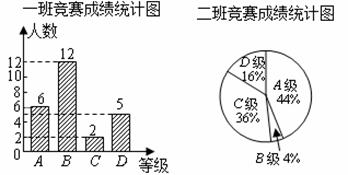 在学校组织的环保知识竞赛中,每班派出参加比赛的人数相同,成绩分为A、B、C、D四个等级,其中相应等级的得分依次记为100分,90分,80分,70分,学校将初二年级的一班和二班的成绩整理并绘制成统计图(如图).
