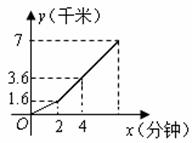 某隧道全长为7千米,王师傅开车通过隧道所走路程y(千米)与时间