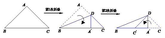 12.如图,等腰直角△ABC中AB=AC,将其按下图所示的方式折叠两次.