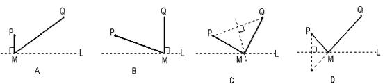 5.如图,直线L是一条河,P,Q是两个村庄。欲在L上的某处修建一个水泵站,向P,Q两地供水,现有如下四种铺设方案,图中实线表示铺设的管道,则所需管道最短的是( )