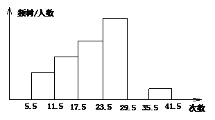 6.(图表题)明湖区一中对初二年级女生仰卧起坐的测试成绩进行统计分析,将数据整理后,画出如下频数分布直方图,如图,已知图中从左到右的第一、第二、第三、第四、第六小组的频率依次是0.10,0.15,0.20,0.30,0.05,第五小组的频数是36,根据所给的图填空:
