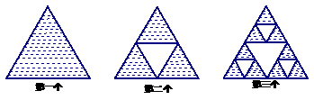 6、在第一个图中取等边三角形各边的中点,连成一个等边三角形,将其挖去,得到第二个图形;对第二个图形中的每个阴影三角形仿照先前的做法得到第三个图形,如此继续.如果第一个等边三角形的面积为1,则第n个图形中所有阴影三角形面积的和是多少?