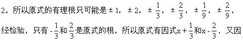 说明 若整系数多项式有分数根,可将所得出的含有分数的因式化为整系数因式,如上题中的因式