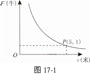 14.在对物体做功一定的情况下,力F(牛)与此物体在力的方向上移动的距离s(米)成反比例函数关系,其图象如图17-1所示,P(5,1)在图象上,则当力达到10牛时,物体在力的方向上移动的距离是 米