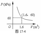 23.某气球内充满了一定质量的气体,当温度不变时,气球内气体的气压P ( kPa )是气体体积V(m3 )的反比例函数,其图象如图17-4所示.当气球内的气压大于120 kPa时,气球将爆炸.为了安全起见,气球的体积应( )