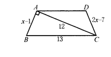 方案 因为△ABC是直角三角形,所以运用勾股定理,求出x的值,再代入2x-7中,求出CD的长.把线段AB和CD的长度进行对比,发现梯形ABCD是等腰梯形.