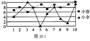 8.小张和小李去练习射击,第一轮10枪打完后两人的成绩如图20-1所示,通常新手的成绩不太稳定,那么根据图的信息,估计小张和小李两人中新手是___ _____.