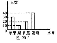 为了筹备班级联欢会,班长对全班50名同学喜欢吃哪几种水果作了民意调查,小明将班长的统计结果绘制成统计图(如图20-6),并得出以下四个结论,其中错误的是( )