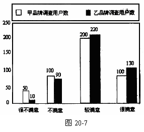 40.如图20-7反映了被调查用户对甲、乙两种品牌空调售后服务的满意程度(以下称:用户满意程度),分为很不满意、不满意、较满意、很满意四个等级,并依次记为1分、2分、3分、4分。