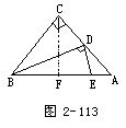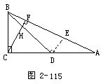 例1 已知:△ABC中,∠C= 90°,AC=BC=1,BD是AC边上的中线,E点在AB边上,且ED⊥BD.求△DEA的面积(图2-113).