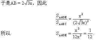 因此只要求出S△ADE即可,为此,设DE=x,则