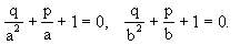 a2+pa+q=0,b2+pb+q=0,
