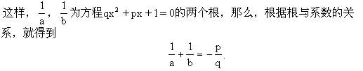 分析与解 由已知条件,联想到方程根的定义,a,b是方程x2+px+q=0的两个根,由a,b不为零,有