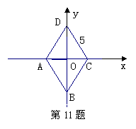 11、如图,以菱形ABCD两条对角线所在直线建立直角坐标系,对角线交点O为原点,菱形的边长为5,A(-3,0),则B的坐标是_________.