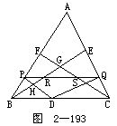 5.设E,F分别为AC,AB的中点,D为BC上的任一点, P在BF上,DP∥CF,Q在CE上,DQ∥BE,PQ交BE于R,交![]()