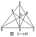 8.如图2-197所示.AD是锐角△ABC的高,O是AD上任意一点,连BO,OC并分别延长交AC,AB于E,F,连结DE,DF.求证:∠EDO=∠FDO.