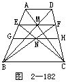 21.如图2-182所示.梯形ABCD中,AD∥BC(AD<BC),AC和BD交于M,EF过M且平行于AD,EC和FB交于N,GH过N且平行于AD.求证: