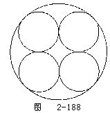 44.在直径为50毫米(mm)的铁板中,铳出四个互相外切,并且同样大小的垫圈(图2-188),那么垫圈的最大直径是多少?