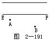48.要在一条河边修一座水塔, 以便从那里给A,B两个城市供水(设A,B在河岸EF的同侧),那么水塔应建在河岸EF的什么地方, 才能使水塔到A,B两市供水管道总长度最短(图2-191)?