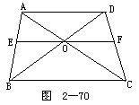 1.如图2-70所示.梯形ABCD中,AD∥BC,BD,AC交于O点,过O的直线分别交AB,CD于E,F,且EF∥BC.AD=12厘米,BC=20厘米.求EF.