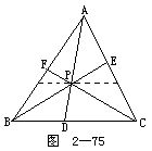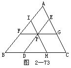 4.P为△ABC内一点,过P点作DE,FG,IH分别平行于AB,BC,CA(如图2-73所示).求证: