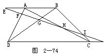 5.如图 2-74所示.在梯形 ABCD中,AB∥CD,AB<CD.一条直线交BA延长线于E,交DC延长线于J,交AD于F,交BD于G,交AC于H,交BC于I.已知EF=FG=CH=HI=HJ,求DC∶AB.