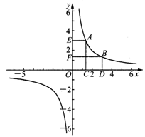 的图象如图所示,A、B是图象在第一象限内的两个动点,过A、B分别作x轴的垂线,垂足分别为C、D,再分别作y轴的垂线,垂足分别为E、F,试问矩形ACOE、BDOF的面积的比值是多少?试说明理由.