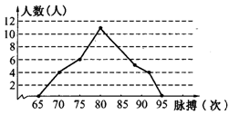 3.右图示为30名学生每分钟脉搏跳动次数的频数分布折线.在图中,两个虚设附加组的组中值分别是______和________,这两组的频数为_______.