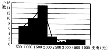 实施 40户居民的季度支出的最小值是560,最大值是3800,极差是3240,取组距500元,分成7组如下表: