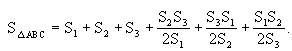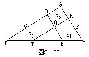 例4 如图2-130,通过△ABC内部一点Q引平行于三角形三边的直线,这些直线分三角形为六个部分,已知三个平形四边形部分的面积为S1,S2,S3,求△ABC的面积.