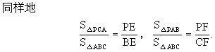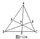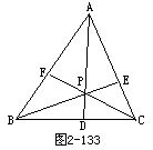 例7 如图2-133,设P是△ABC内任一点,AD,BE,CF是过点P且分别交边BC,CA,AB于D,E,F.求证: